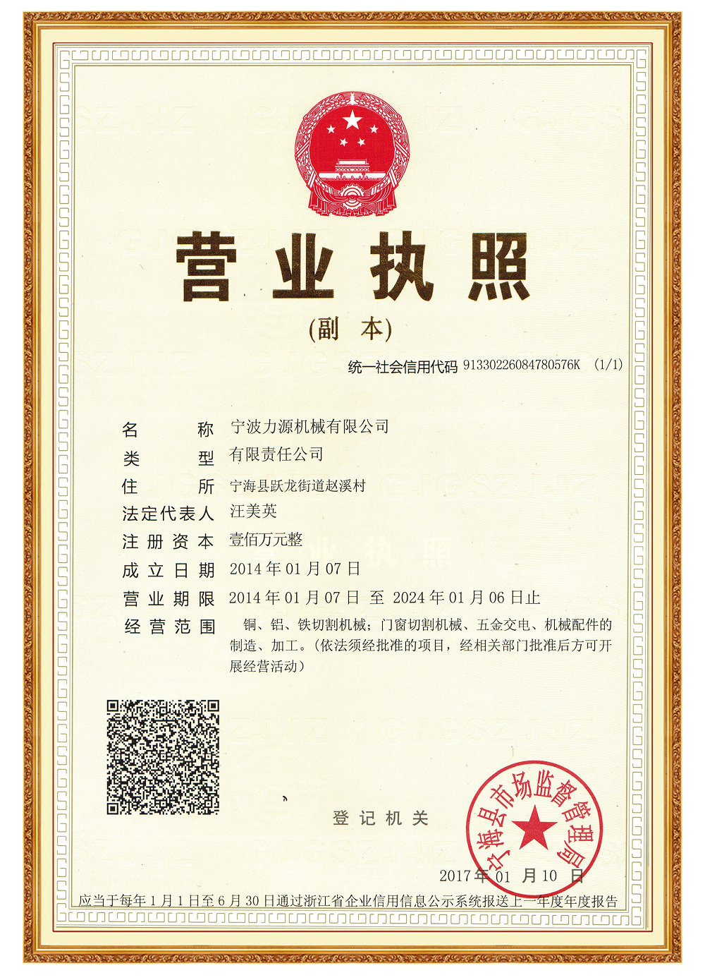 公司于2014年01月07日成立(原寧海縣力鑫機(jī)械廠),公司主要產(chǎn)品有半自動(dòng)銅鋁材切割集,全自動(dòng)銅鋁材切割機(jī),高端數(shù)控銅鋁材切割機(jī),集研發(fā),生產(chǎn),銷售一體的制造型企業(yè)