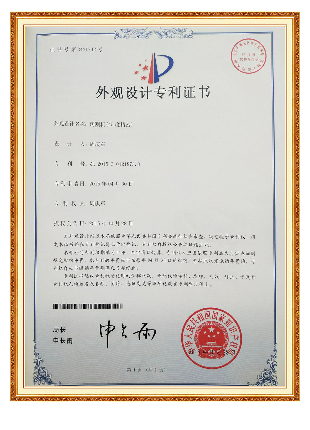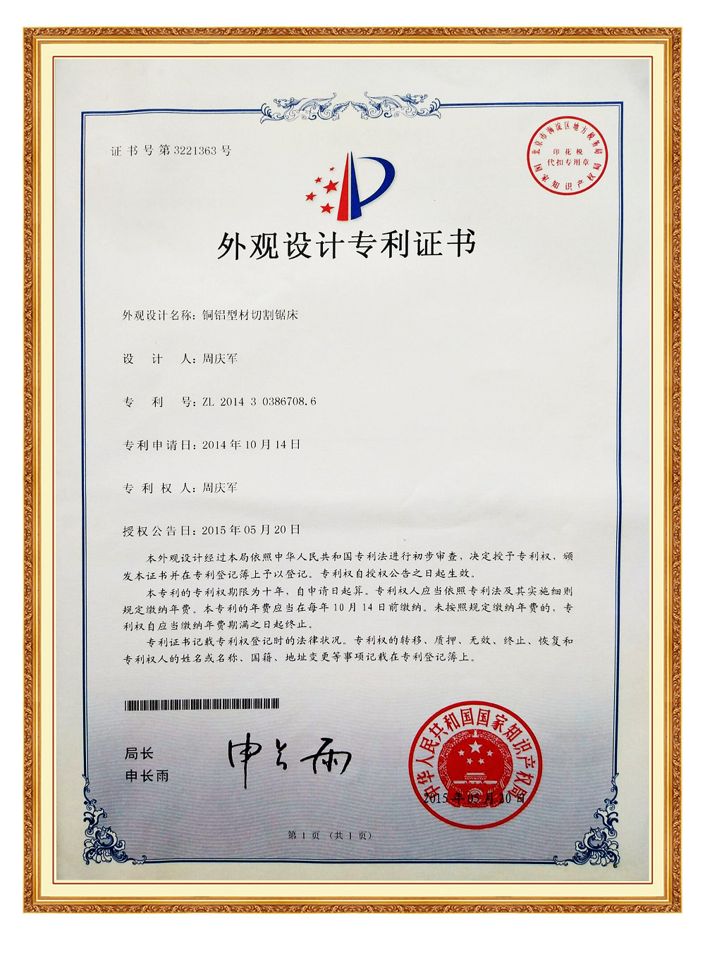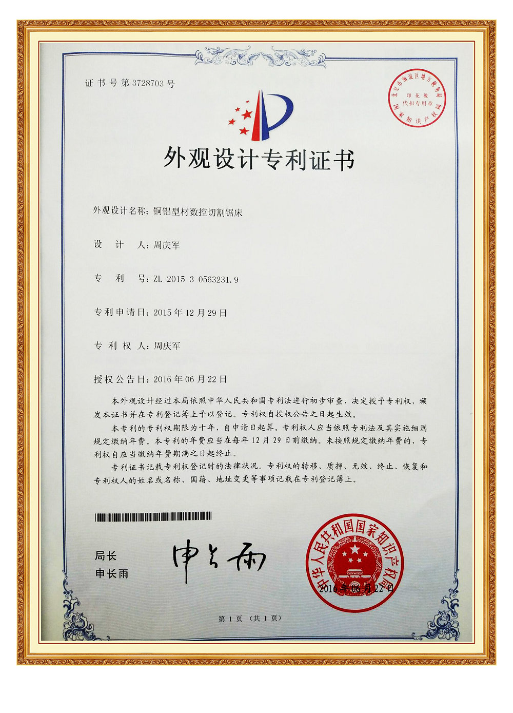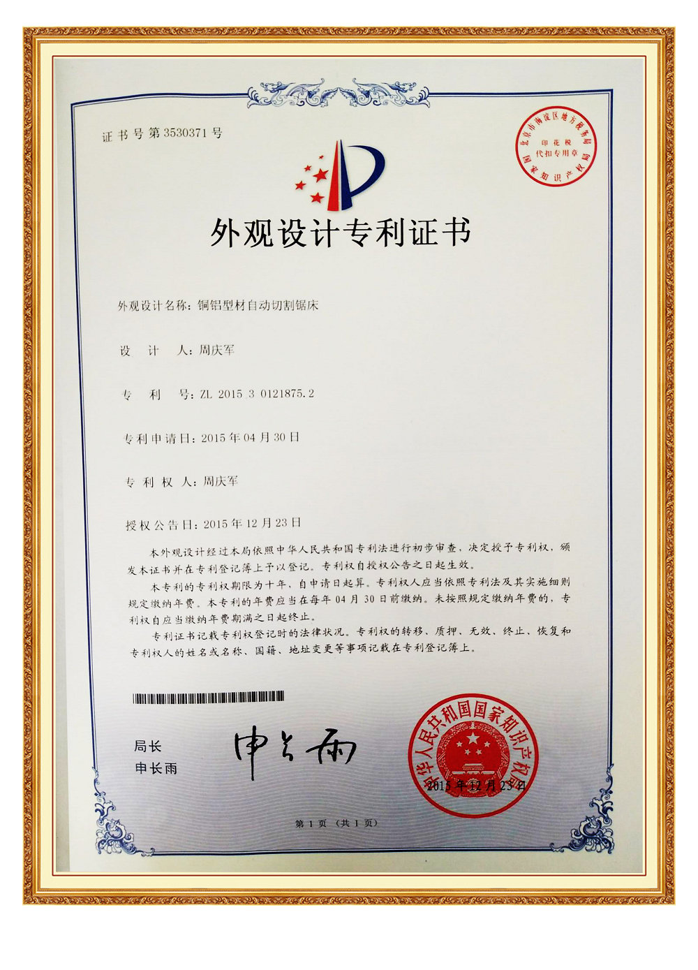 公司多款設(shè)備擁有專利及實(shí)用新型專利證書,實(shí)用性有可觀的提高,新型產(chǎn)品解決了企業(yè)使用老式切割機(jī)鋸切材料效率低,安全性差,精度不達(dá)標(biāo)等問題,有效為客戶提高了產(chǎn)能并節(jié)省了人工成本,取得了客戶一定程度的認(rèn)可